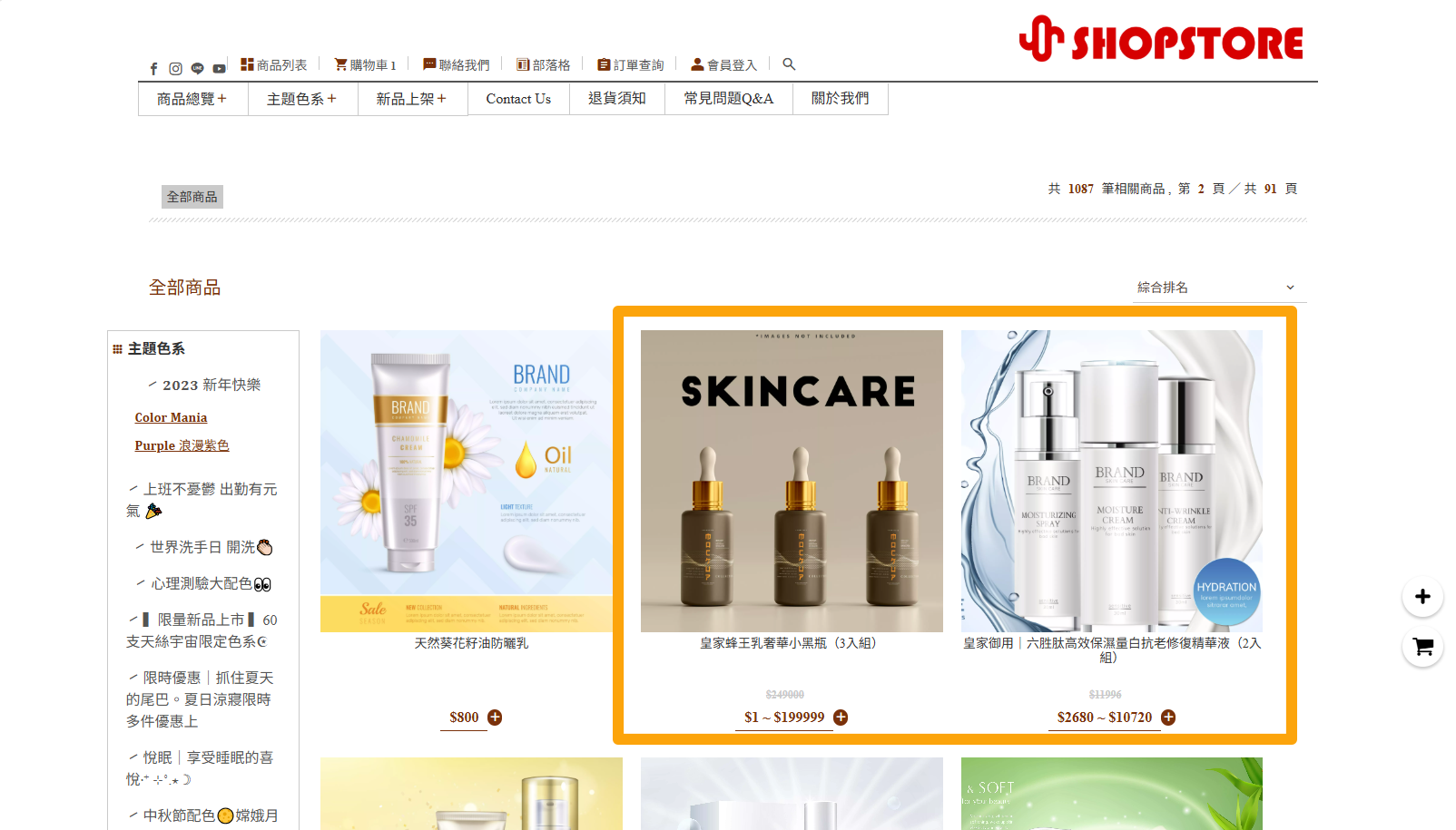 顧客可以於前台「商品列表」,在觀看到商品本身有設定「多規格」的商品時,即可以觀看最低價格~最高價格的「價格幅度」。